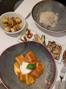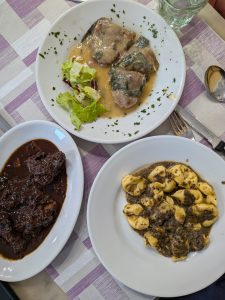 We had peposo, tortellacci with truffle cream and mushrooms, ham and cheese beef rolls, and Zuccotto Fiorentino for dessert. Everything was excellent, especially the peposo, the beef stew in pepper wine sauce. The dessert surprised me more than I expected. Rich, comforting, and not overly sweet.